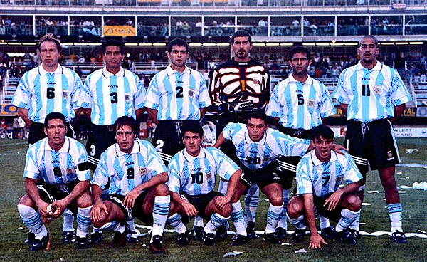 Equipo de la seleccion Argentina en uno de sus partidos preparatorios para el campeonato de Francia 98 | ||||||||||||||||||